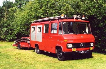 Via de veenkoloniën reden we richting Appelscha. Daar wonen kennissen van de Mercedes-Hanomagclub Dubbellucht waar we lid van zijn Ooit hadden we beloofd eens langs te komen wanneer we in de buurt zouden komen met de brandweerauto. Gelukkig stond het adres van hem op de pechlijst van de club en die had ik op het laatste ogenblik in mijn zak gestoken. Ik moest wel even zoeken waar het gebleven was. Natuurlijk had ik niet van tevoren gebeld dat we langs zouden komen. Waarom zou ik? Vakantie is doen waar je zin in heeft en niet om afspraken te maken. Op weg naar Jubbega reden we langs een lang, recht kanaal waar een vijftal brandweerwagens stonden opgesteld. Nieuwsgierig als we zijn parkeerden we onze auto in een van de weinige zijstraten en gingen op onderzoek uit. Het bleek dat er een braderie was met medewerking van de plaatselijke brandweer. Een duikdemonstratie en voor een paar Euro was het mogelijk een foto te maken vanaf de hoogwerker uit Veendam.